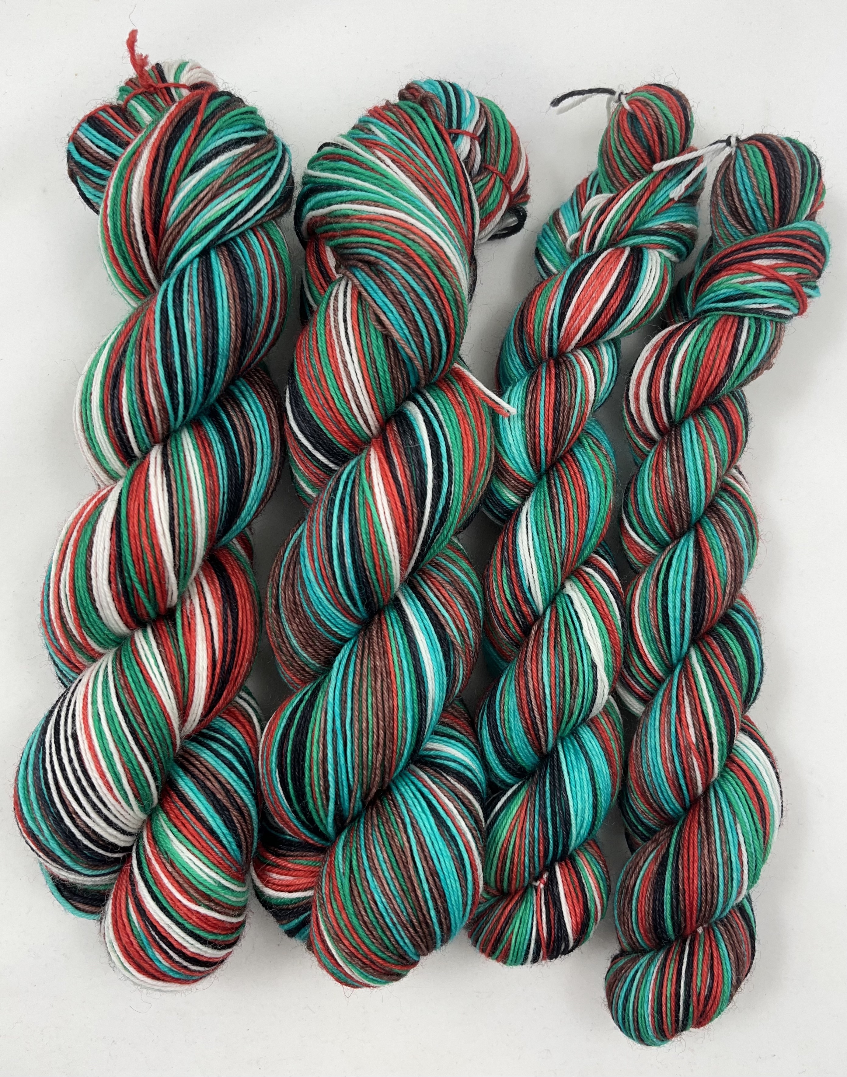 6 väriä. Sukkia neuloessasi raitojen leveys on n. 8 kerrosta (sukan varren leveys on 60 silmukkaa, puikkokoko 2,5 mm). Huomaa, että raidan leveys riippuu käyttämästäsi puikkokoosta, neuletiheydestä ja neuleen koosta. Lanka sopii kaikkeen neulontaan.