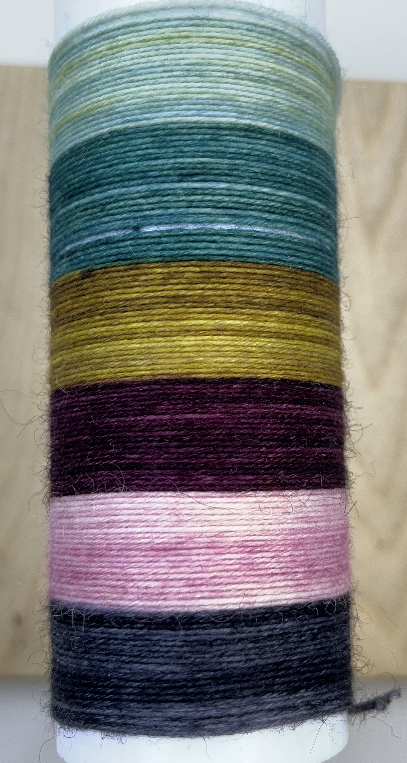 Itseraidoittuva sukkalanka, 6 väriä. Lanka sopii kaikkeen neulontaan. Sukkia neuloessasi raitojen leveys on n. 4 kerrosta (sukan varren leveys on 60 silmukkaa, puikkokoko 2,5 mm). Huomaa, että raidan leveys riippuu käyttämästäsi puikkokoosta, neuletiheydestä ja neuleen koosta.