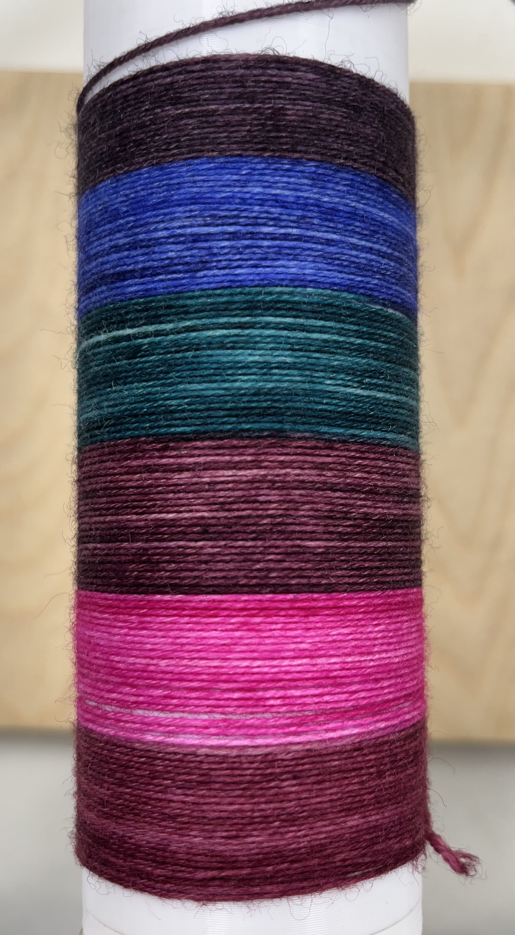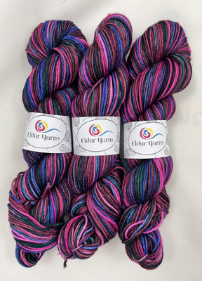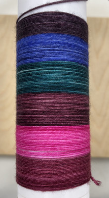 6 väriä ja sukkia neuloessasi raitojen leveys on n. 4 kerrosta (sukan varren leveys on 60 silmukkaa, puikkokoko 3 mm). Huomaa, että raidan leveys riippuu käyttämästäsi puikkokoosta, neuletiheydestä ja neuleen koosta. Lanka sopii kaikkeen neulontaan.