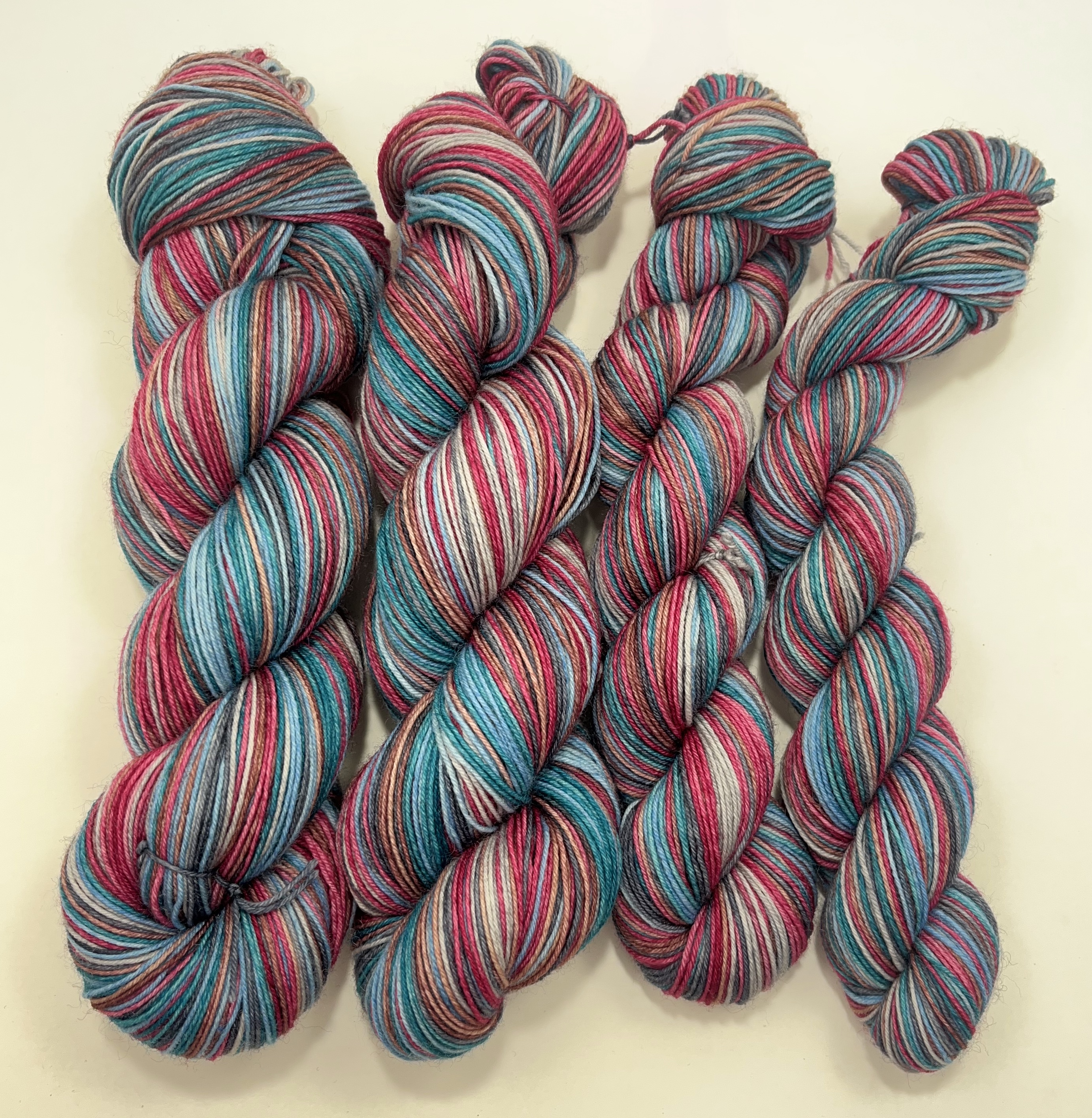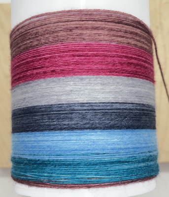 6 väriä. Sukkia neuloessasi raitojen leveys on n. 8 kerrosta (sukan varren leveys on 60 silmukkaa, puikkokoko 2,5 mm). Huomaa, että raidan leveys riippuu käyttämästäsi puikkokoosta, neuletiheydestä ja neuleen koosta. Lanka sopii kaikkeen neulontaan.
